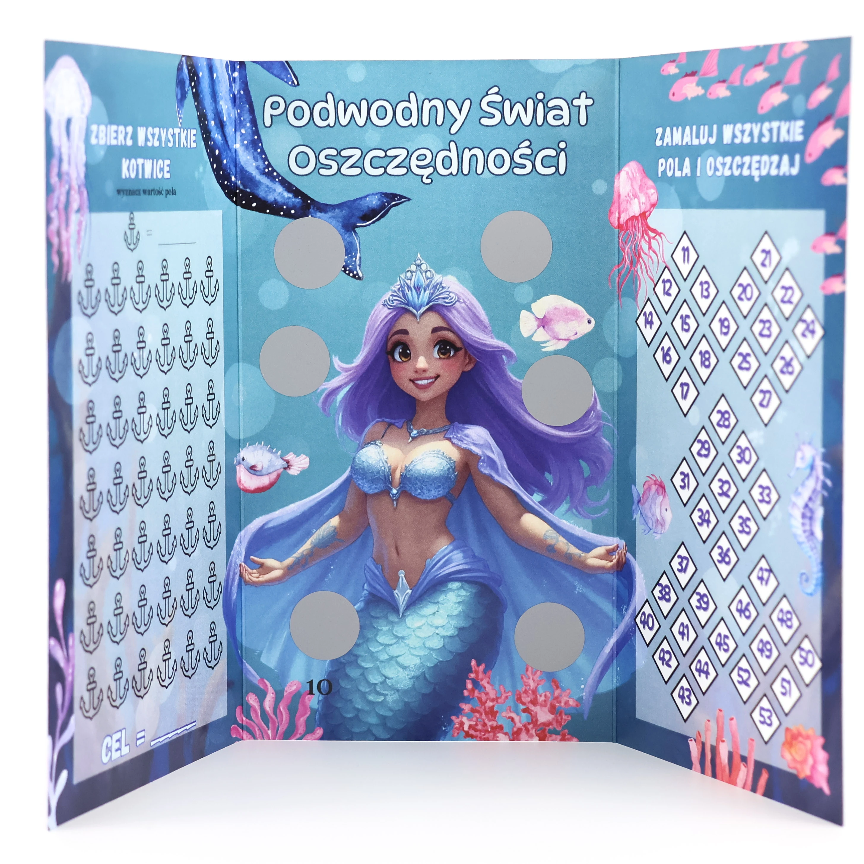 Wyzwanie książeczkowe z serii Podwodny Świat Oszczędności jest idealne dla fana podwodnych przygód, lazurowej wody i mistycznych syren. Grafika jest cudowna i cieszy oko. Wyzwanie 1400 zawiera kilka wyzwań oszczędnościowych, co świetnie motywuje do oszczędzania.