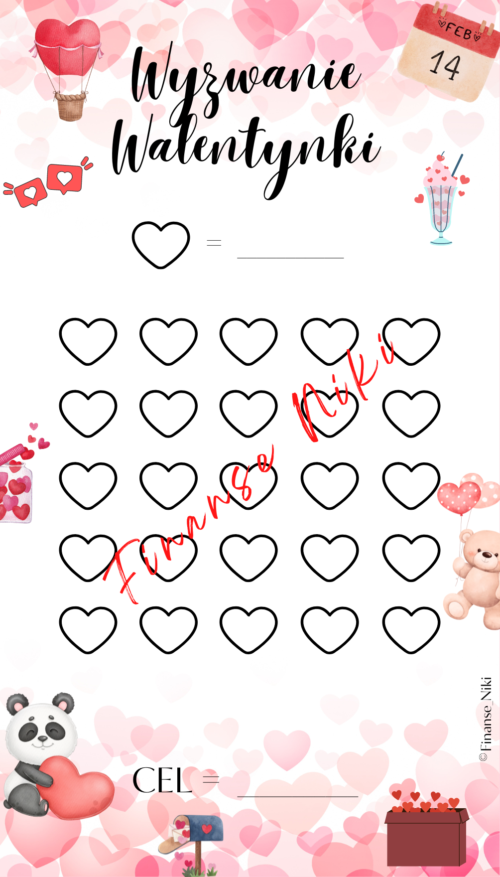 Określ cel oraz podziel zaplanowaną kwotę przez ilość serduszek i tym samym wiesz już jaką wartość musisz wpłacać.