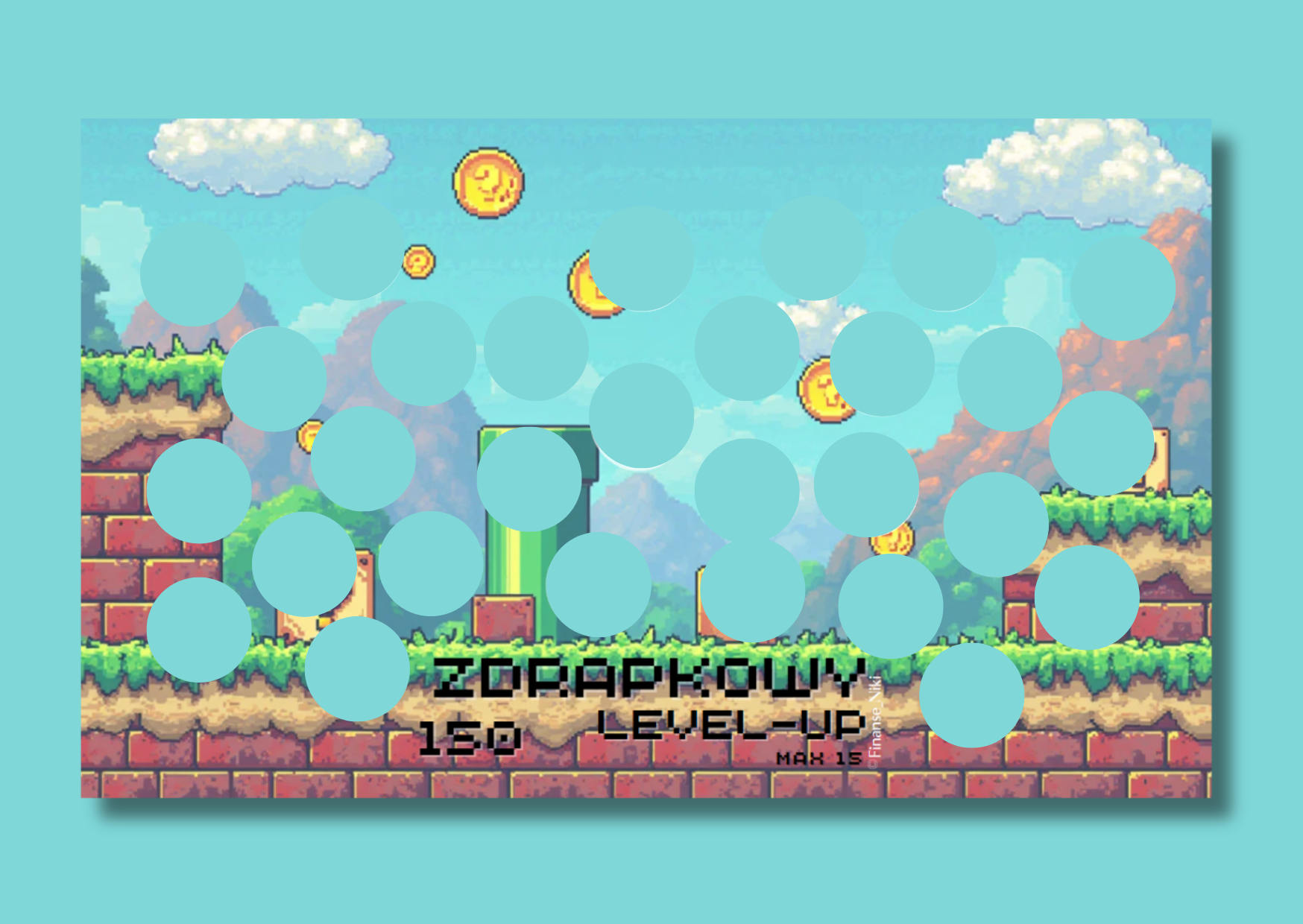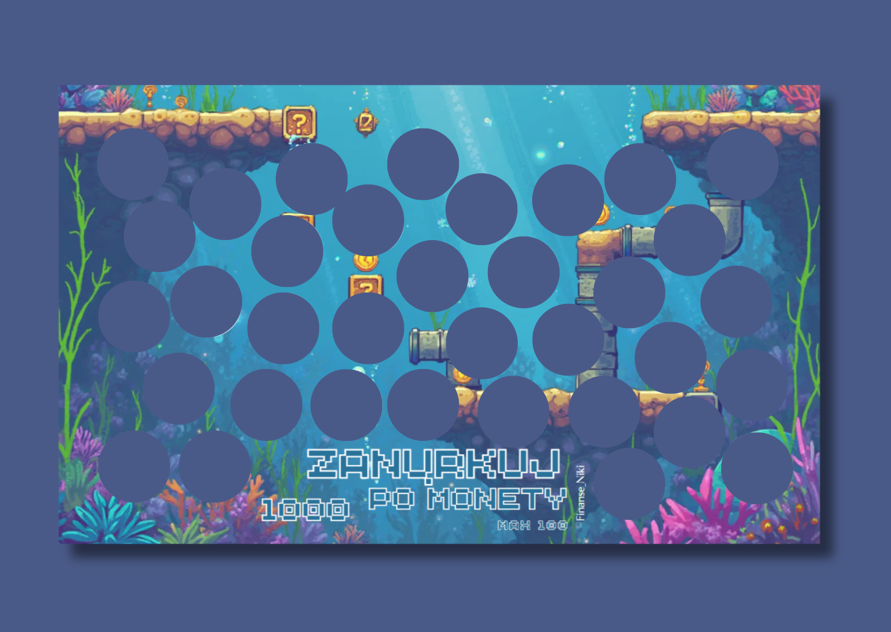 Każda zdrapka w tym formacie to minimum 33 pola – a pod nimi zróżnicowane kwoty i niespodziankowe zadania. Na odwrocie znajdziesz status finansowy, dzięki któremu możesz śledzić swoje postępy i czuć satysfakcję z każdego zdrapanego pola.